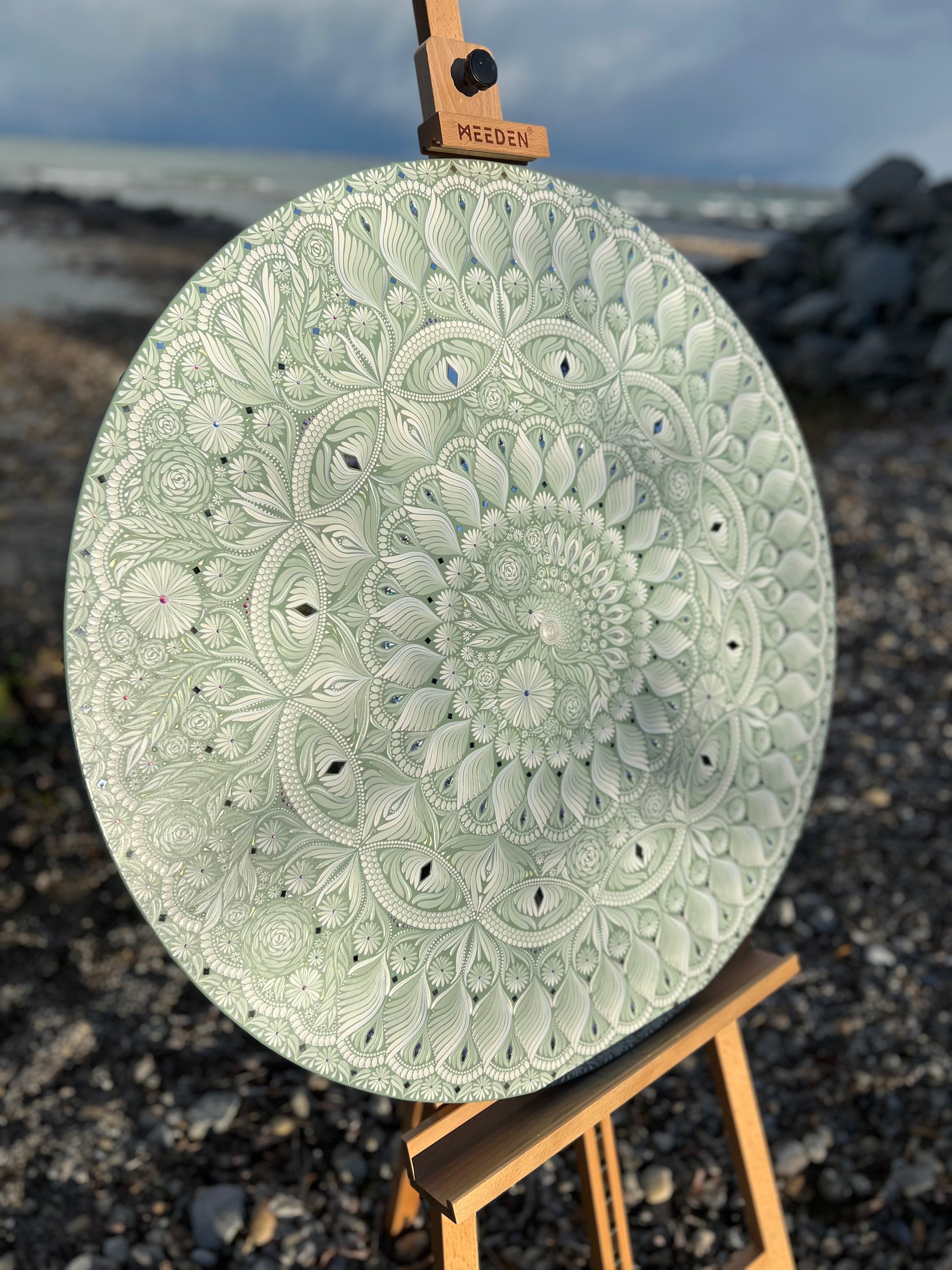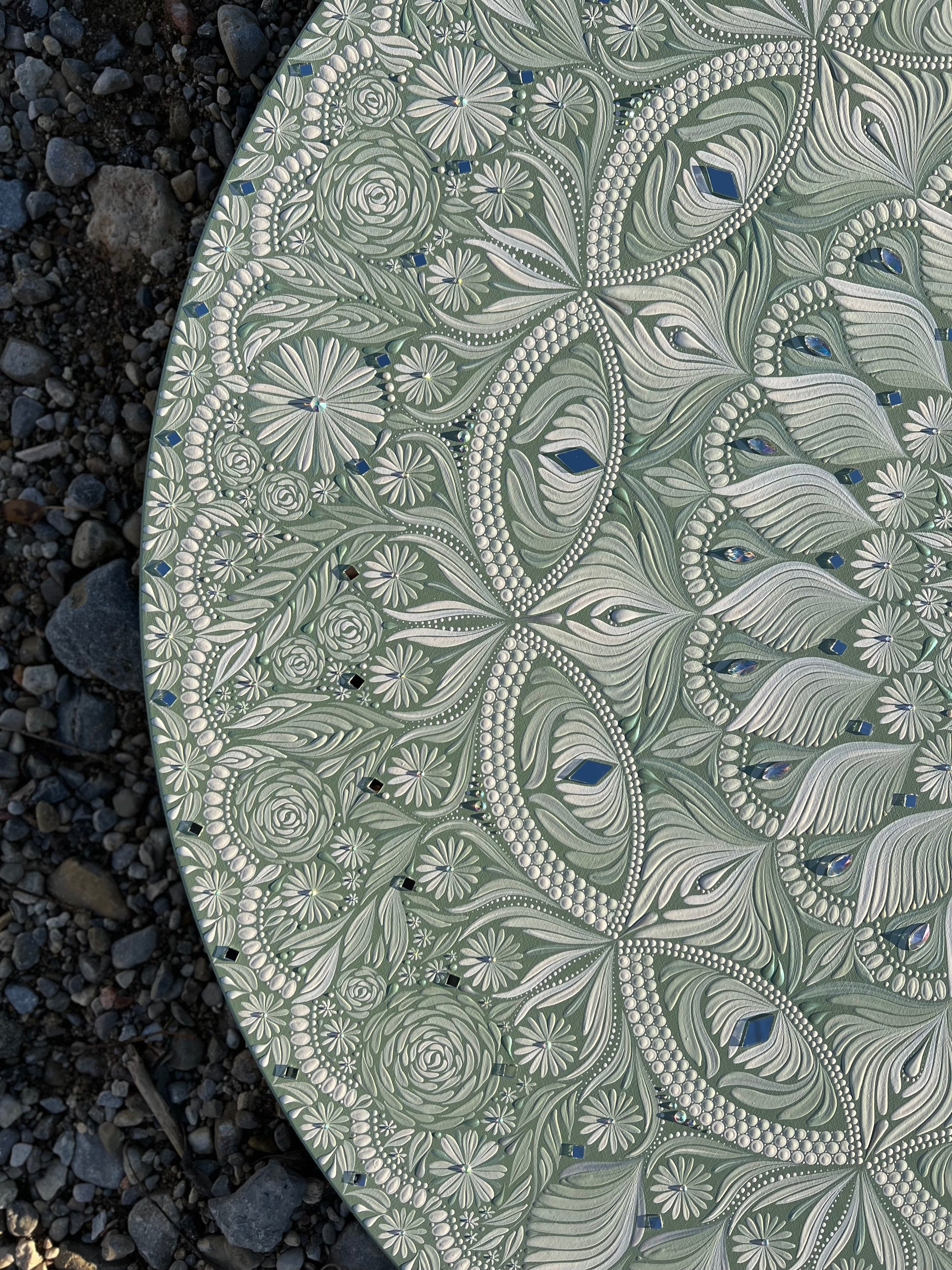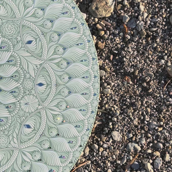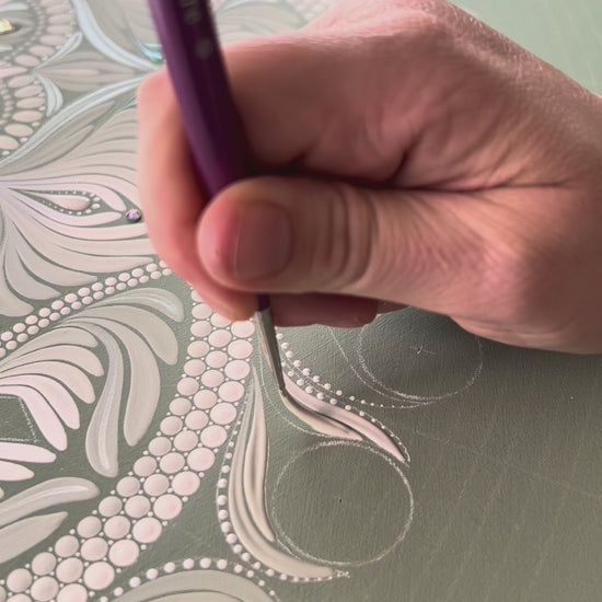 This piece is the first in my "Free Flow" collection; an exploration of mixing traditional, structured mandala composition with organic, asymmetrical designs. It offers a calming, grounded presence and is sure to become the centrepiece in your sanctuary of a home or living space.