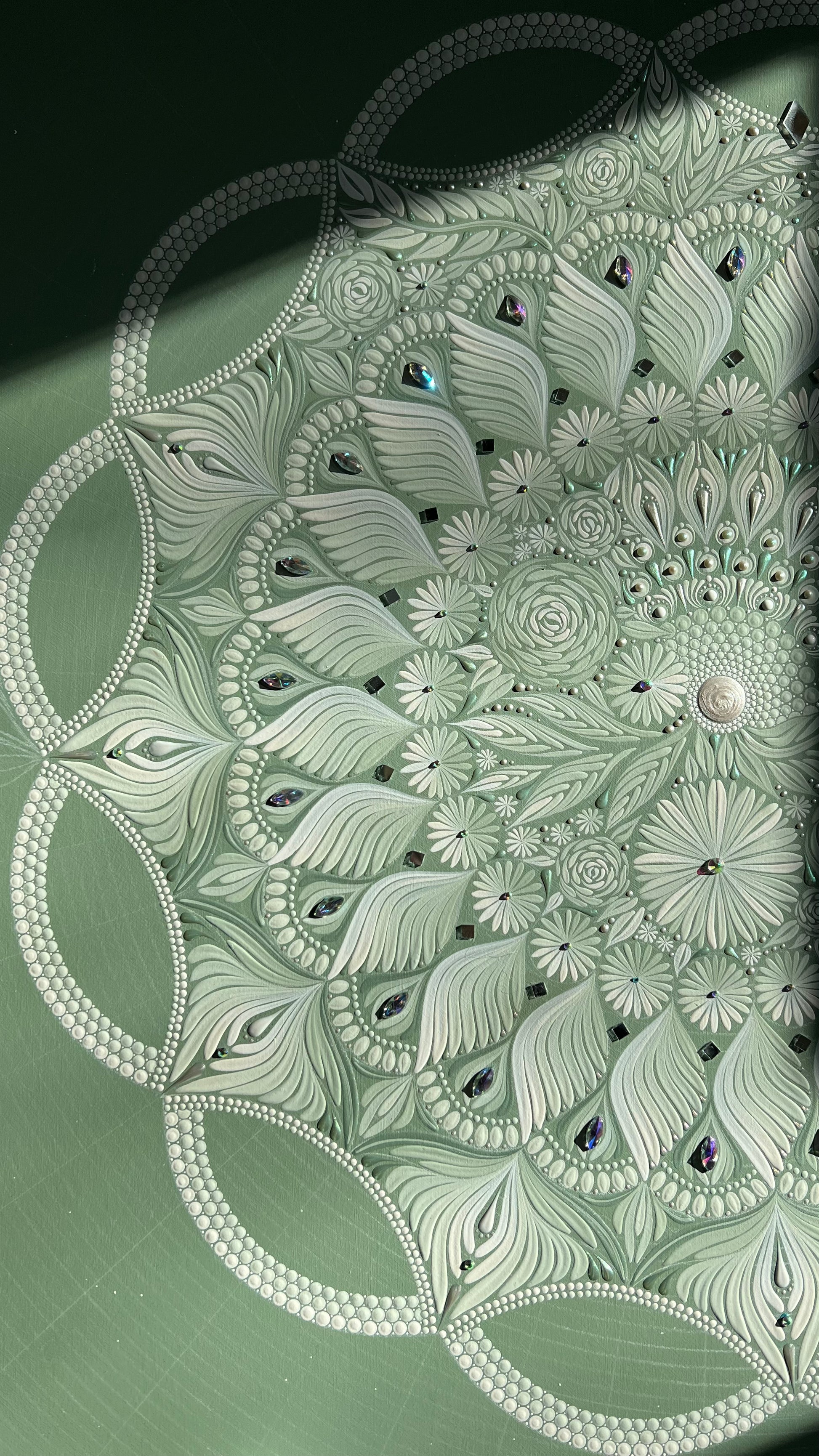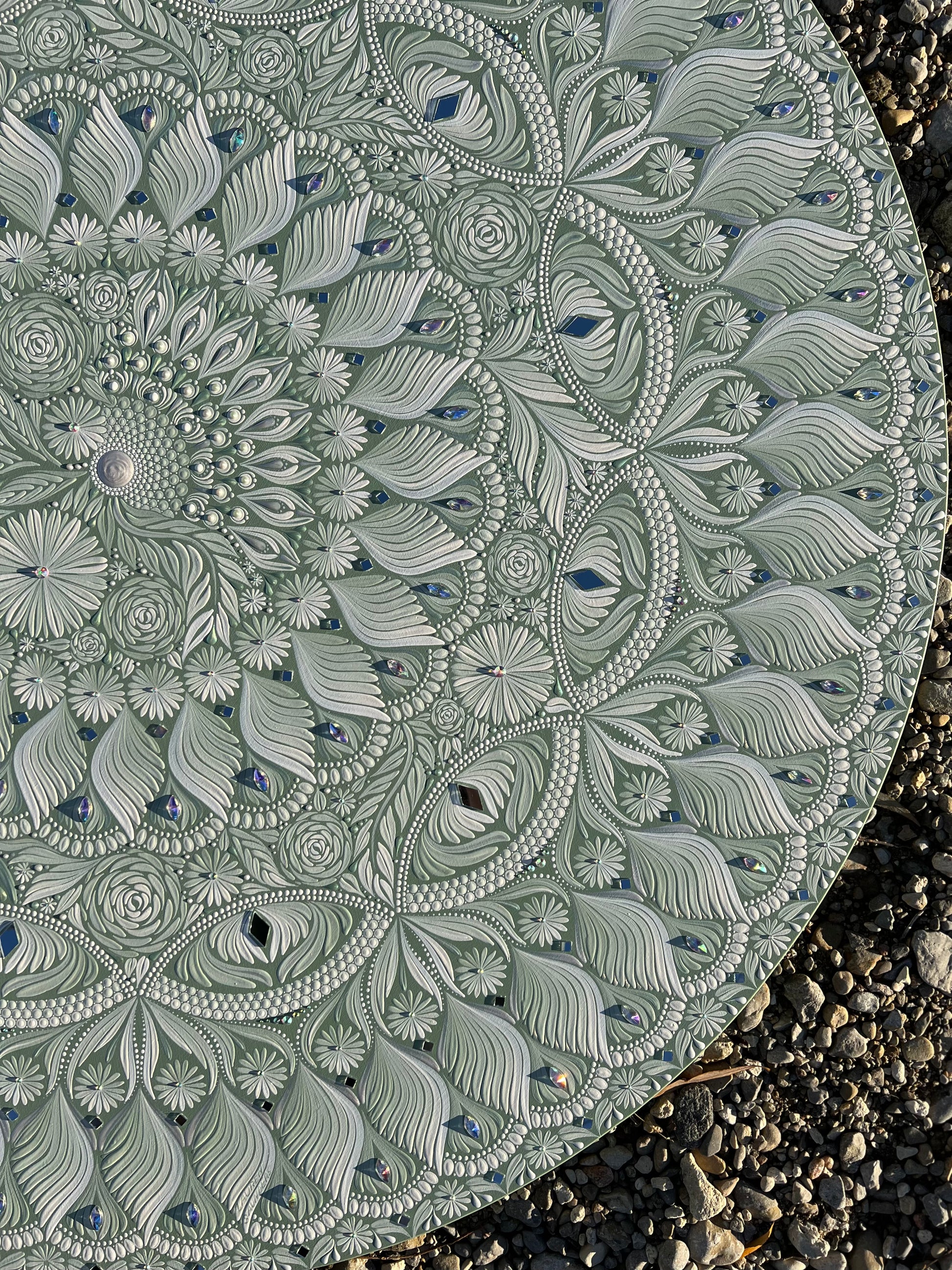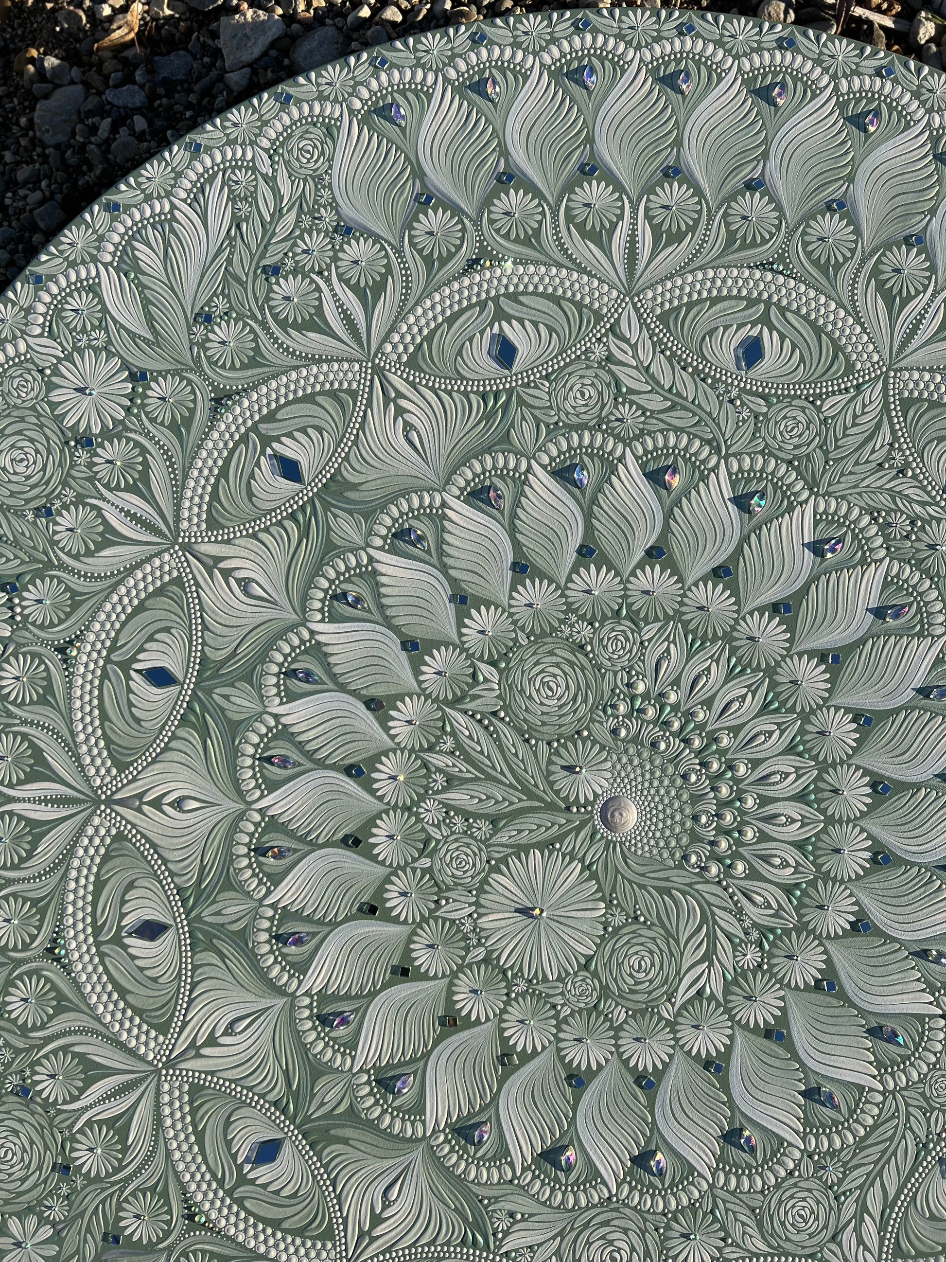 This piece is the first in my "Free Flow" collection; an exploration of mixing traditional, structured mandala composition with organic, asymmetrical designs. It offers a calming, grounded presence and is sure to become the centrepiece in your sanctuary of a home or living space.
